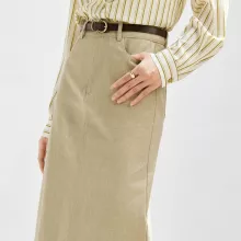 Elevate your autumn wardrobe with our Classic Cotton Denim Skirt, designed for women who appreciate simplicity and elegance. This stunning mid-calf skirt combines a straight silhouette with a chic slit hem, making it a versatile addition to your collection. Whether you’re heading to the office, going out for brunch, or enjoying a relaxed evening, this skirt ensures you look graceful and fashionable.