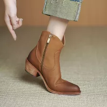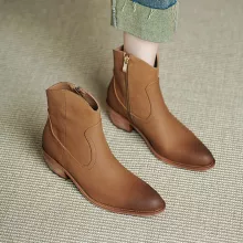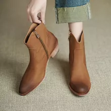 The ankle-high design and easy zip closure make them a breeze to slip on and off, while the smooth sheepskin insole adds an ultra-comfortable touch you’ll feel with every step. With a 1.8-inch square heel and round toe shape, these boots offer just the right height without sacrificing stability or comfort. The clean, solid color and subtle zipper detail add just the right amount of edge to your look without going over the top.