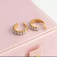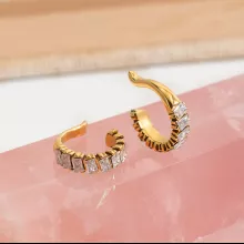 These elegant earrings feature delicate square zircon accents set along a smooth C-shaped frame, creating the perfect balance of sparkle and sophistication. Their clip-on style makes them ideal for anyone who wants stylish earrings without the need for pierced ears. Lightweight and hypoallergenic, they’re gentle on the skin and comfortable enough to wear from day to night.