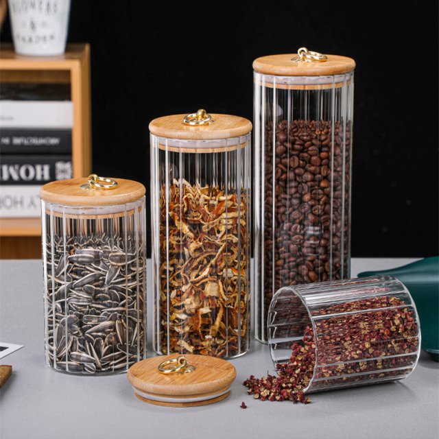 Crafted from high-quality glass, this jar features a secure lid with a chic copper ring that ensures your contents stay fresh while enhancing the overall aesthetic of your kitchen. The clear glass design allows you to easily identify what’s inside, making it a perfect addition to any pantry, countertop, or dining area. The modern stripes on the glass add texture and visual appeal, making it a great conversation starter at gatherings or a subtle touch of elegance for everyday use.