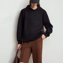 Color Block Embroidered Fleece Hooded Sweater – Loose Casual Pullover