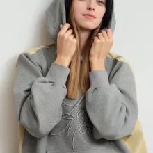 Featuring a unique color-block design with stylish embroidered accents, this sweater stands out from the crowd. The letter embroidery on the front adds a fun, streetwear-inspired touch, while the cozy hood provides extra warmth and comfort. The regular full-length sleeves are designed to fit comfortably without feeling restrictive, making this hoodie perfect for all-day wear.