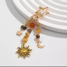 This keychain features a charming mix of boho-style beads and intricately designed sun and moon pendants, all crafted from durable zinc alloy with a trendy, glossy finish. The round shape and radiant detailing make it a perfect statement piece that’s as artistic as it is functional. It’s lightweight, yet sturdy enough to stand the test of daily use. Measuring approximately 4 inches in length, it’s the ideal size for styling without bulk.