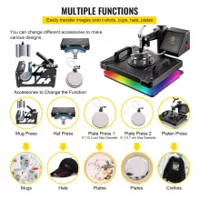- 5/6/8 in 1 Versatile Kit: With a large heat platen, this machine is perfect for applying designs on various items including T-shirts, caps, mugs, plates, and more.