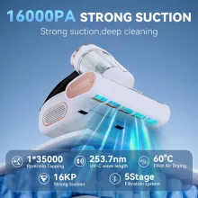 - 16Kpa Powerful Suction — Effectively removes dust, debris, and allergens from fabrics.