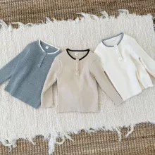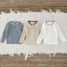 This sweater is built around the essentials parents care about most. It features a trendy color-blocked neckline that adds a modern touch without being too bold. The knitted fabric offers a smooth, breathable feel, making it comfortable for all-day play. With full-length sleeves and a relaxed fit, it’s ideal for cooler weather—use it as a base layer under coats or as the main piece for indoor outings.
