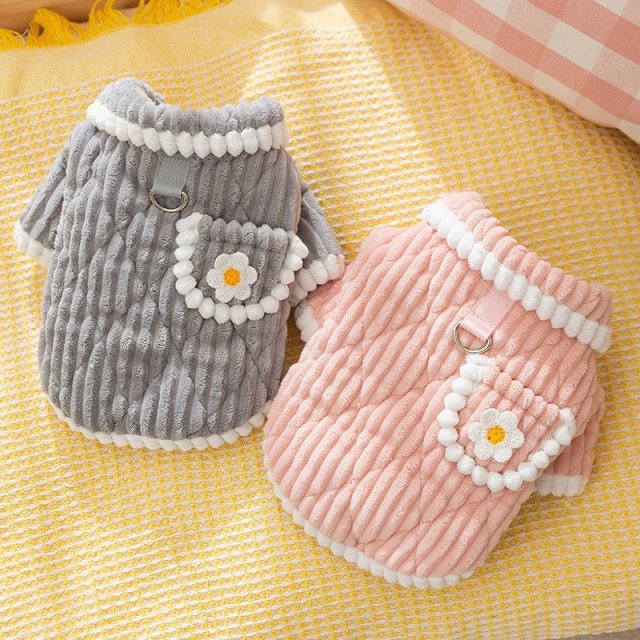 Keep your furry friend cozy and stylish all season long with our Cozy Fleece Teddy Pet Jacket. Designed for both dogs and cats, this adorable four-legged pajama jacket is made with ultra-soft fleece, perfect for chilly autumn strolls and cold winter nights. The sweet small-flower pattern adds a touch of charm, while the functional pockets bring both style and practicality to your pet’s wardrobe.