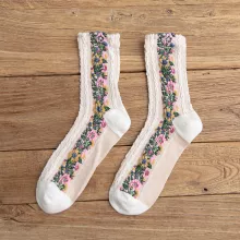 Cozy Floral Harajuku Cotton Socks for Women – Kawaii Mid-Calf Style