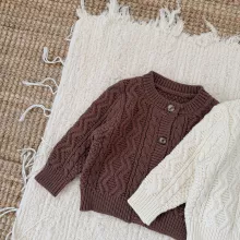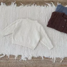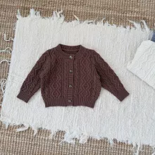 This knitted cardigan is crafted with care, combining a solid pattern and gentle texture that suits both boys and girls. The full-length sleeves and regular fit keep your child warm in autumn weather while still allowing easy movement. Its simple yet eye-catching vintage style makes it an ideal choice for outings, photo days, or everyday wear. Made with a true-to-size fit, it ensures your child stays comfortable without feeling restricted.