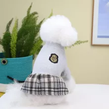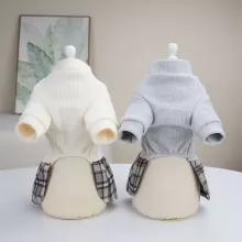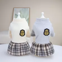 Cozy Knit Pet Sweater Dress with Checkered Skirt for Autumn & Winter