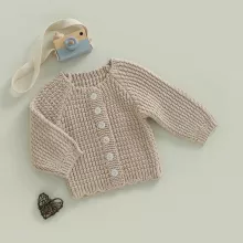 Keep your baby snug and stylish with this adorable knitted cardigan sweater, perfect for cool fall days and chilly winter nights. Designed with love and care, this button-down cardigan brings both comfort and charm to your baby’s wardrobe. Its soft knit texture feels gentle on delicate skin, making it ideal for everyday wear or special outings. Whether layered over a onesie or paired with tiny jeans, this sweater is an instant outfit upgrade for your baby boy or girl.