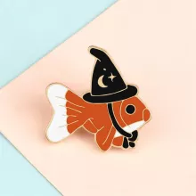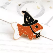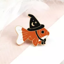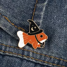 This creative brooch pin is more than just a cute accessory – it’s a fun conversation starter! The adorable goldfish with its tiny witch hat is bound to attract attention, and it’s a great way to show off your unique style. Whether you’re dressing up for a special occasion or just want to add a little charm to your everyday outfits, this enamel pin does the trick.