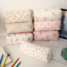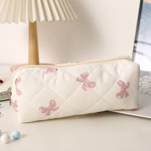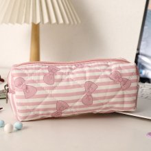 Stay organized in style with this cute bowknot pencil case, perfect for school, office, or creative hobbies. Made from soft fabric with a chic lined pattern, this pencil pouch combines a playful look with practical storage. Its compact yet roomy size of about 6.7 x 2.8 x 2.4 inches makes it easy to carry in your backpack, tote, or handbag while still holding all your essential stationery items.