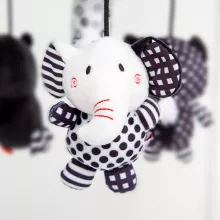 These hanging toys are crafted with baby-friendly materials and thoughtfully shaped for tiny hands to explore. Each piece features a cute animal design that instantly brightens any baby photo. Lightweight and easy to attach, they work beautifully on strollers, bassinets, cribs, and even play gyms. Measuring approximately 6–8 inches in height, they are perfectly sized to be both decorative and interactive.