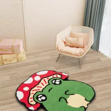 Add a splash of charm and cozy fun to your room with the irresistibly cute Frog Mushroom Tufted Rug. Designed for lovers of all things kawaii and cozy, this unique area rug features a green frog wearing an adorable mushroom cap—an instant conversation piece that will brighten any corner of your home. Whether you’re updating your bedroom, sprucing up your bathroom, or adding flair to a reading nook, this rug is the perfect blend of comfort and personality.