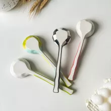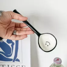 This spoon is crafted from high-quality ceramic, giving it a smooth, glossy finish that’s pleasing to the eye and comfortable to hold. The hand-painted design ensures that each piece is unique, adding a personal touch to your table setting. Its long handle (approximately 6.9 inches) offers added convenience, making it ideal for tall dessert glasses, deep bowls, and even your favorite kitchen jars.