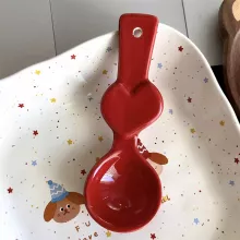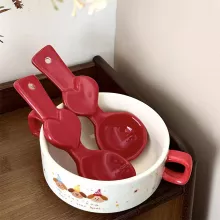 Crafted from high-quality ceramic, each spoon features a glossy solid color finish in your choice of red, black, or yellow. The hand-drawn heart pattern gives it a unique, artisanal feel that sets it apart from mass-produced flatware. Its long handle offers comfortable grip and control, making it easy to scoop soups, rice dishes, desserts, and more with elegance and ease.