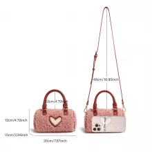 Add charm and coziness to your look with this irresistibly cute plush Boston bag featuring heart embroidery. This fashion-forward shoulder bag combines playful design with practical function, making it the perfect companion for school, casual days out, or weekend errands. Designed in a structured bowling bag silhouette, it brings a pop of personality to any outfit without compromising on space or style.
