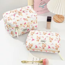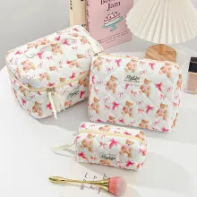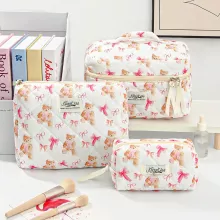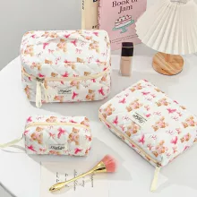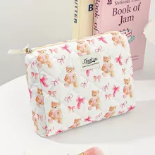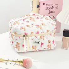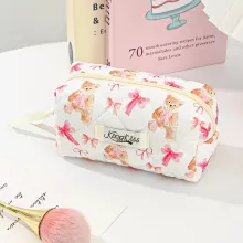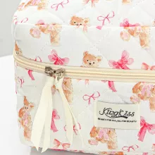Crafted from high-quality polyester, this soft-touch quilted bag is durable, lightweight, and easy to clean. Its plush texture and padded feel add an extra layer of protection for your cosmetics and accessories. Plus, the playful bear print makes it a delightful gift for any beauty lover, especially during the holidays.