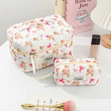 Keep your beauty essentials safe, organized, and oh-so-cute with this quilted bear makeup bag. Designed with an irresistibly sweet bear pattern, this compact yet spacious pouch is the perfect addition to your travel or daily routine. Whether you’re heading on vacation, staying overnight with friends, or freshening up at work, this makeup bag keeps everything you need in one charming, organized place.