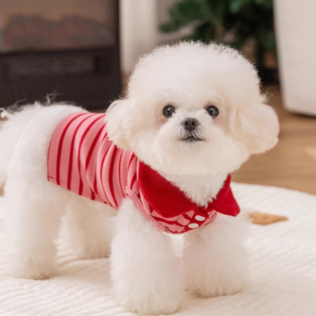 Dress your furry friend in the perfect blend of charm and comfort with this Cute Striped Puppy Polo Shirt. Designed for small dogs and cats, this sweet pullover vest is more than just clothing – it’s a fashionable statement for your pet. Featuring a classic striped pattern with a soft collar, it adds a touch of elegance while keeping your little one warm during chilly days.