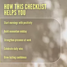 - Morning Mindset Boost: Affirmations, posture checks, and mini-visualizations to start your day strong.