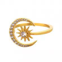 Dainty Gold Crescent Moon & Star Rings for Women – Stainless Steel Wedding Band