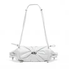 Make a bold statement with the Diesel Scrunch-D Shoulder Bag — a must-have for fashion-forward individuals who crave effortless cool with a touch of luxury. Crafted from premium white calf leather, this eye-catching bag features a unique “scrunched” texture that artfully wraps around Diesel’s signature D logo, creating a relaxed yet high-end silhouette. The glossy finish and gathered detailing add dimension and shine, making it the ultimate companion for both day and night styling.
