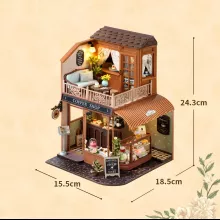 DIY Wooden Duplex Café Miniature House Kit with Music Box