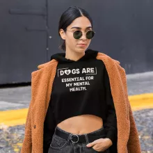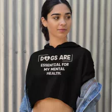 Dogs Are Essential For My Mental Health Women’s Cropped Hoodie – Dog Lover Hooded Sweatshirt – Cute Puppy Super Crop Top Hoodies
