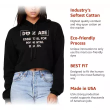Dogs Are Essential For My Mental Health Women’s Cropped Hoodie is proudly made with 7x less water than average manufacturers, in recycle-friendly facilities that also guarantee zero sweatshop conditions. Dog Lover Women’s Cropped Hoodie is designed and printed in California.