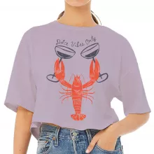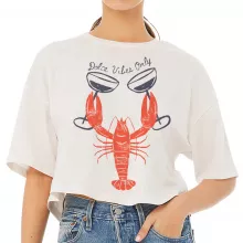 Dolce Vibes Only Cropped T-Shirt – Lobster Trendy Tee – La Dolce Vita Women’s Basic T-Shirt