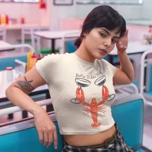 Looking for something unique in a cropped T-shirt? Check out Lobster Trendy Tee. This women’s oversized boxy t-shirt brings ample comfort and a laidback style that feels right at home in any occasion..