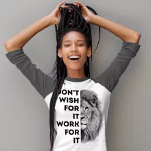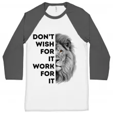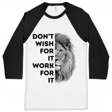 Don’t Wish for It Work for It Baseball T-Shirt – Lion 3/4 Sleeve – Work Hard Quote Raglan Jersey Shirt