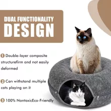 This donut cat bed is ideal for any time your cats want to rest, hide, or play. Whether they are curling up for a cozy nap, bonding together, or chasing each other through the tunnel, this versatile nest keeps them entertained and comfortable. It’s especially great for homes with two cats that enjoy sharing space but also appreciate their own personal hideaways.