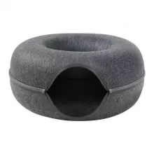 Introduce your cats to the perfect blend of comfort and fun with this Donut Cat Bed designed for two cats. Crafted from high-quality felt, this soft and durable pet nest doubles as a cozy resting spot and an engaging tunnel for playful adventures. Its clever donut shape provides a secure and warm space your furry friends will love to curl up in, while the interactive tunnel invites curiosity and active play.