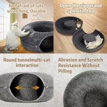 This unique cat bed features a smart zipper design that easily splits the donut bed into two separate nests in just seconds. This dual-use function is perfect for multi-cat households, allowing each cat to have their own private space or join together for shared snuggles. The felt material is carefully chosen for its breathability, scratch-resistance, and durability, making it easy to maintain and ideal for energetic pets.