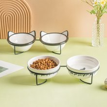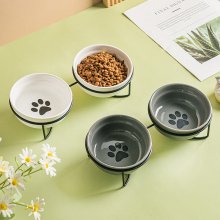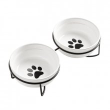 The set features two high-quality ceramic bowls with a sweet cartoon paw print design, cradled in a sturdy iron frame. The elevated iron stand keeps bowls securely in place and helps reduce neck strain during feeding. With three size options—10 oz, 12 oz, and 20 oz—you can choose the perfect fit for your pet’s appetite. Best used during your pet’s regular feeding times, this bowl set is ideal for daily use, whether you’re at home or away.