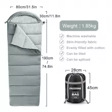 This sleeping bag is ideal for spring, autumn, and winter use, keeping you warm in temperatures as low as 14°F and as high as 32°F. Made with durable terylene fabric and filled with breathable cotton, it strikes the perfect balance between heat retention and ventilation. Measuring 31.5 x 86.6 inches, it’s perfectly sized for tall individuals or couples seeking extra space and comfort.