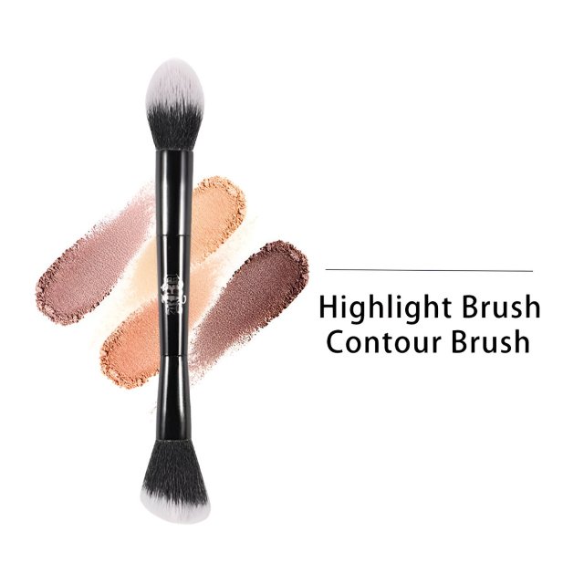 The unique double-headed design saves space in your makeup bag and eliminates the need for multiple tools. Its soft fiber bristles pick up just the right amount of product and distribute it evenly, preventing cakiness and harsh lines. The stylish black handle not only looks sophisticated but also provides a comfortable grip for precise control. This combination of elegance and functionality makes it a must-have addition to any makeup collection.