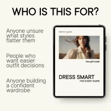 Dress Smart for Every Shape is a practical, easy-to-follow digital guide designed to help you understand your body, choose clothes that truly flatter, and build a wardrobe that feels confident and intentional. Instead of guessing what works, this guide teaches you how proportions, silhouettes, and styling choices come together to create balance and visual harmony. Whether you’re refining your personal style or starting fresh, this resource gives you clear direction without overwhelm.