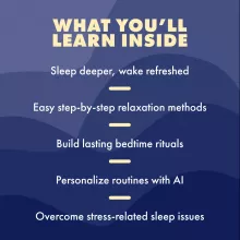 - Chapter 2: Relaxation Techniques That Work – Breathing exercises, progressive muscle relaxation, guided imagery, meditation, and AI-powered sleep tools