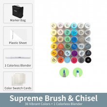 • Dual tips: Brush tip for smooth, expressive strokes and chisel tip for filling large areas quickly.