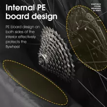 This wheel bag is crafted with a tough polyester exterior featuring a water-repellent 420D finish that shields your wheels from rain and splashes. On the inside, a multilayer shield—featuring 210D PVC lining, 0.12-inch EVA padding, and a PE support board—adds structure, shock absorption, and reliable protection during transport. The nylon zipper with a high-quality slider ensures smooth opening and closing every time.