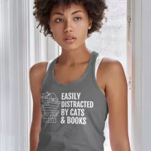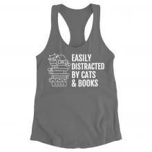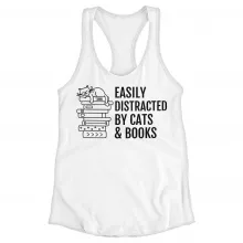 Easily Distracted By Cats And Books Racerback Tank – Cats and Books Tank Top – Book Lover Tank