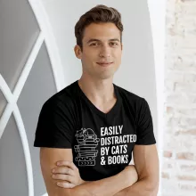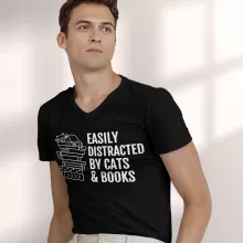 Easily Distracted By Cats And Books V-Neck T-Shirt – Book Lover Basic T-Shirt – Cats and Books Tee