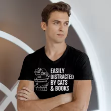 Easily Distracted By Cats And Books V-Neck T-Shirt