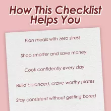 I've never been much of a chef but this checklist has made healthy cooking feel doable (and even enjoyable!). Can't wait to try more new recipes.
