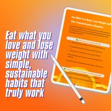 Click “Add to Cart” to download the Eat What You Want, Lose Weight with This Transformation Checklist today and begin your journey toward a healthier, happier you. You CAN lose weight without giving up the foods you love. Let this checklist show you how.