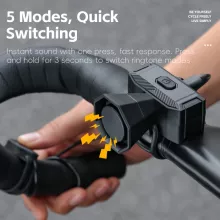 This electric horn offers five distinct sound modes, allowing you to choose the tone that best matches your riding environment—perfect for city commuting, evening rides, or busy trails. Its high-capacity rechargeable battery keeps it ready for daily use, while its compact size, just 2.5 in long, fits neatly on most handlebars. The combination of simplicity, strength, and versatility makes this bell a smart upgrade for any cyclist looking to ride with confidence.